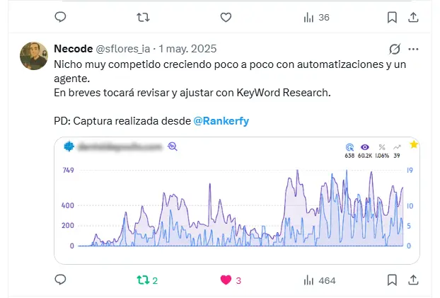 "En pocos días que he probado Rankerfy, me ha sorprendido bastante sobretodo su rapidez, la parte nichera, sin duda que es algo que usaré a futuro."