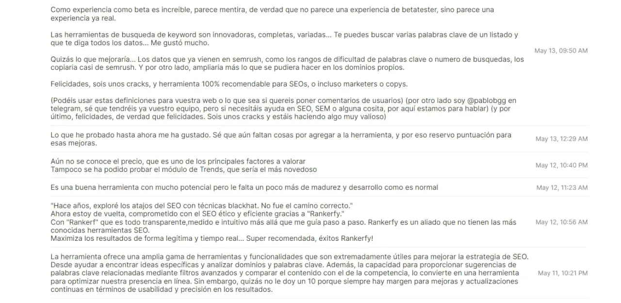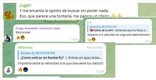 Más de 300 profesionales SEO ya usan Rankerfy. Esto es lo que cuentan en Trustpilot y en nuestra comunidad de Telegram.