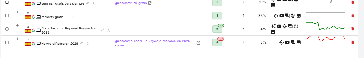 Imagina que publicas un nuevo artículo y empiezas a trabajar una keyword importante para tu proyecto. Durante los primeros días no ocurre gran cosa. Pero a la semana ves que pasas de posición 28 a 17. Sin un Rank tracker probablemente ni te enterarías de ese movimiento.