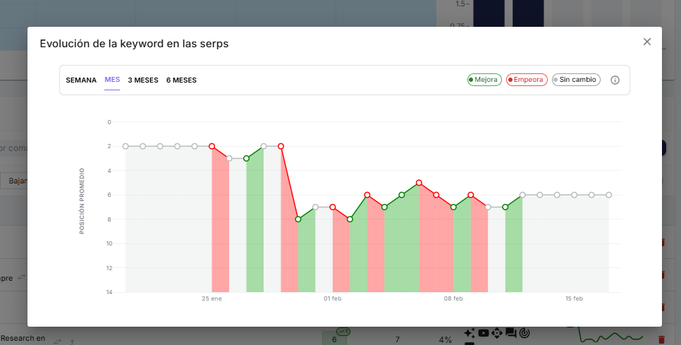 Eso te permite detectar si estás subiendo posiciones, si estás perdiendo visibilidad o si un competidor te ha adelantado en una keyword estratégica.